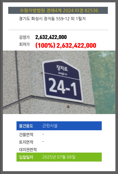 화성시설경매 화성시 장지동 559-12 외 1필지 №2024 타경 82536