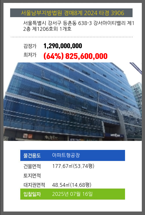 본건은 서울특별시 강서구 등촌동 638-3 강서아이티밸리 제12층 제1206호외 1개호