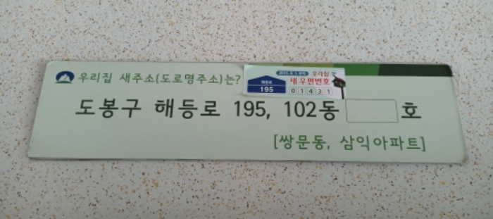 | 소재지 | [지번] 서울특별시 도봉구 쌍문동 56 삼익세라믹아파트 제102동 제10층 제1002호 [도로명 주소] 서울특별시 도봉구 해등로 195 삼익세라믹아파트 제102동 제10층 제1002호 |