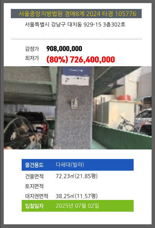 | 신건 | 2025-01-08 | 908,000,000 | 유찰 |