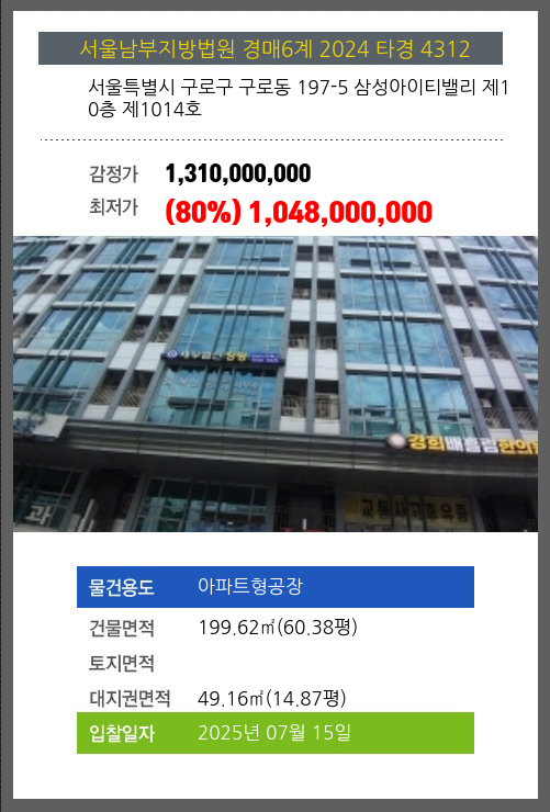 본건은 서울특별시 구로구 구로동 197-5 삼성아이티밸리 제10층 제1014호