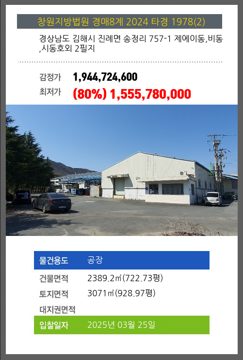 김해공장경매 김해시 진례면 송정리 757-1 제에이동,비동,시동호외 2필지 №2024 타경 1978(2)