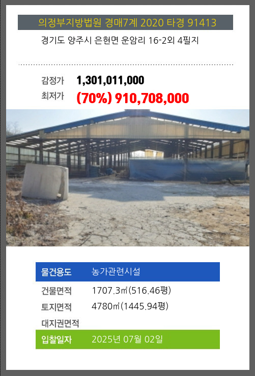 양주농가관련시설경매 양주시 은현면 운암리 16-2외 4필지 №2020 타경 91413