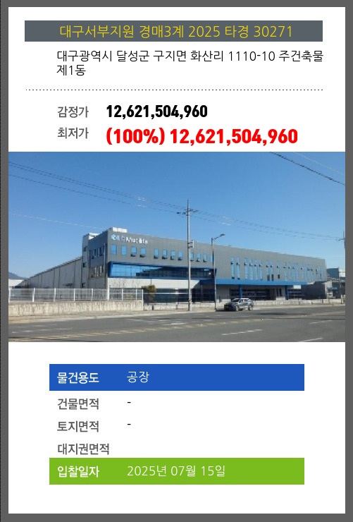 | 용도 | 공장 | 채권자 | 중** | 감정가 | 12,621,504,960 |