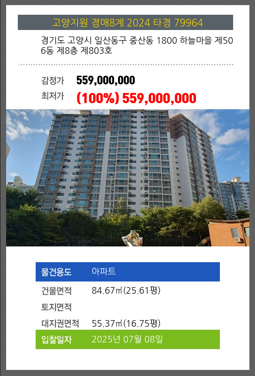본건은 경기도 고양시 일산동구 중산동 1800 하늘마을 제506동 제8층 제803호