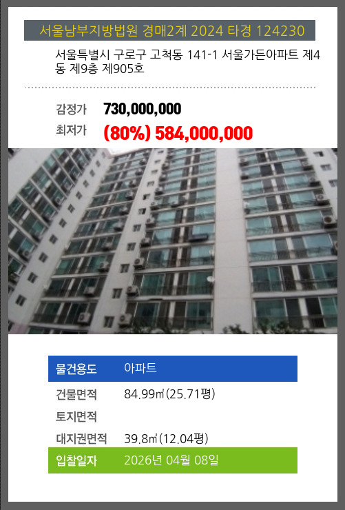 | 신건 | 2026-02-26 | 730,000,000 | 유찰 |