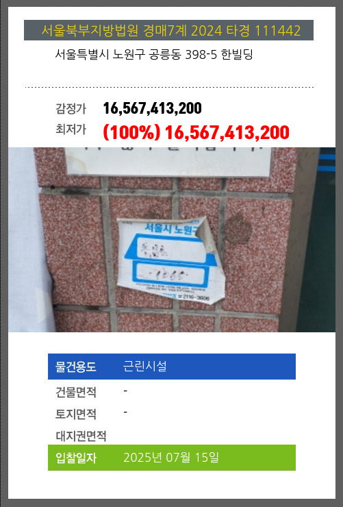 본건은 서울특별시 노원구 공릉동 398-5 한빌딩