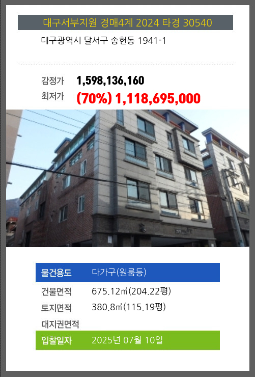 달서다가구(원룸등)경매 달서구 송현동 1941-1 №2024 타경 30540