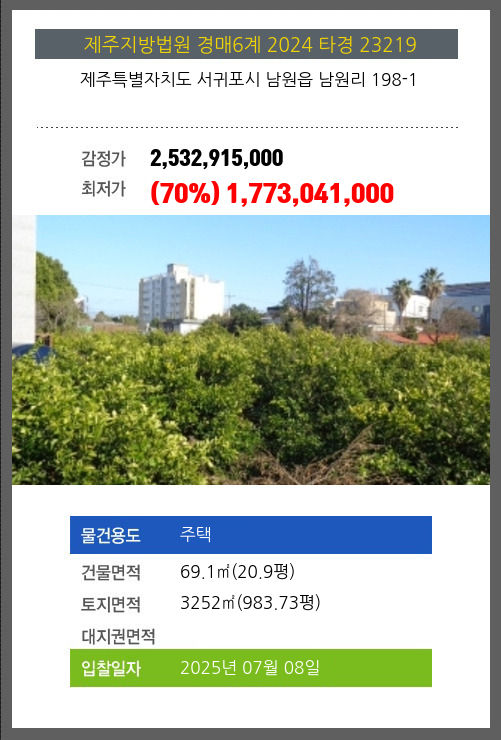 | 신건 | 2025-05-27 | 2,532,915,000 | 유찰 |