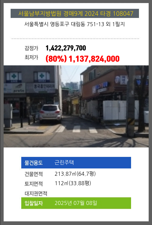본건은 서울특별시 영등포구 대림동 751-13 외 1필지