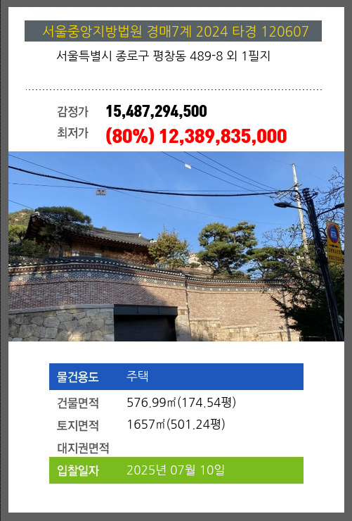 | 신건 | 2025-06-05 | 15,487,294,500 | 유찰 |