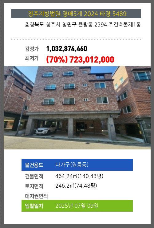 본건은 충청북도 청주시 청원구 율량동 2394 주건축물제1동