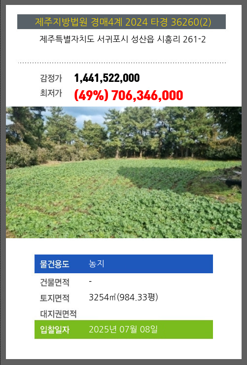 본건은 제주특별자치도 서귀포시 성산읍 시흥리 261-2