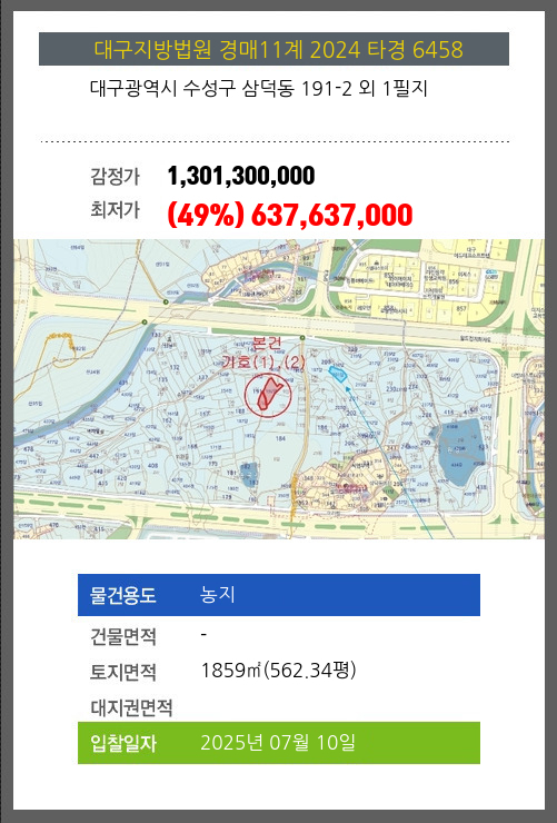 | 소재지 | [지번] 대구광역시 수성구 삼덕동 191-2 외 1필지 | ||||