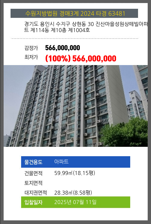 본건은 경기도 용인시 수지구 상현동 30 진산마을성원상떼빌아파트 제114동 제10층 제1004호