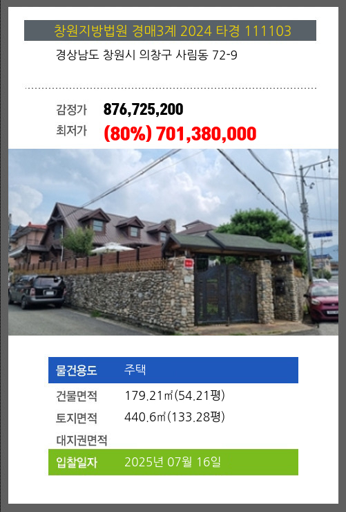 | 건물면적 | 179.21㎡ (54.21평) | 채무자 | 윤** | 최저가 | (80%) 701,380,000 |