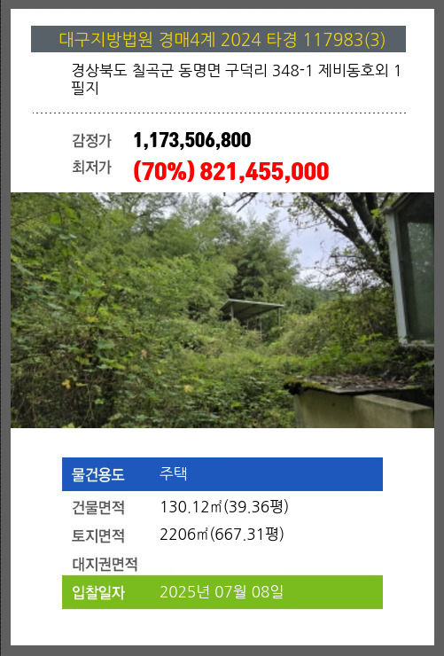 본건은 경상북도 칠곡군 동명면 구덕리 348-1 제비동호외 1필지