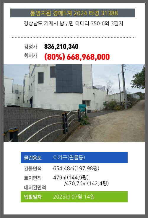 거제다가구(원룸등)경매 거제시 남부면 다대리 350-6외 3필지 №2024 타경 31388