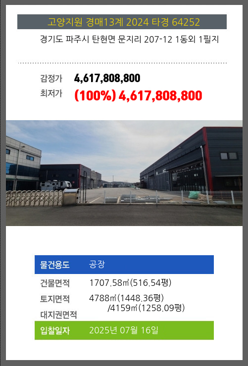 파주공장경매 파주시 탄현면 문지리 207-12 1동외 1필지 №2024 타경 64252