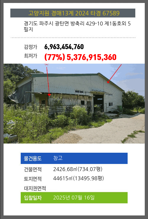 | 용도 | 창고 | 채권자 | 안** | 감정가 | 6,963,454,760 |