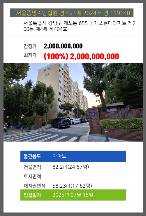 본건은 서울특별시 강남구 개포동 655-1 개포현대아파트 제200동 제4층 제404호