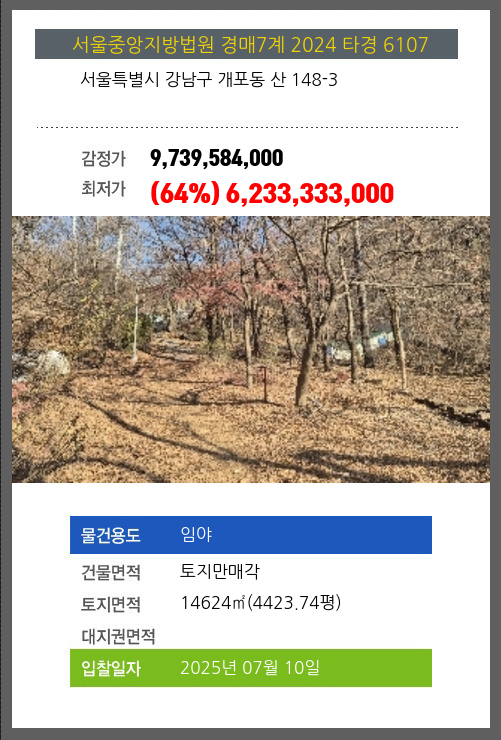 | 신건 | 2025-05-01 | 9,739,584,000 | 유찰 |