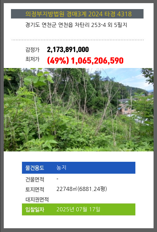 | 소재지 | [지번] 경기도 연천군 연천읍 차탄리 253-4 외 5필지 | ||||