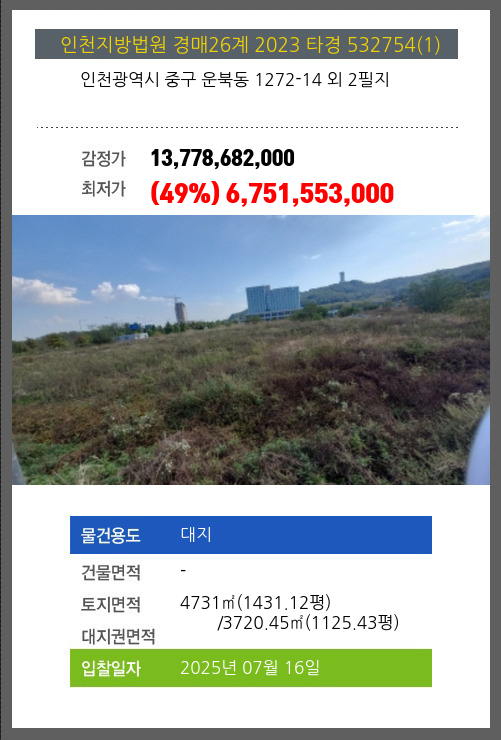 | 신건 | 2025-05-09 | 13,778,682,000 | 유찰 |