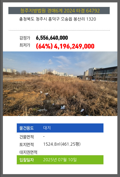 본건은 충청북도 청주시 흥덕구 오송읍 봉산리 1320