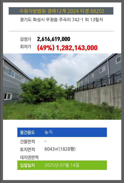화성농지경매 화성시 우정읍 주곡리 742-1 외 13필지 №2024 타경 68202