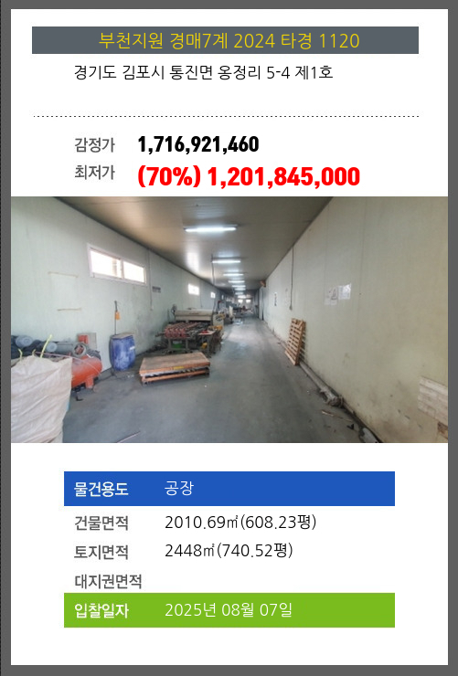 | 용도 | 공장 | 채권자 | 백**외1명외1명 | 감정가 | 1,716,921,460 |