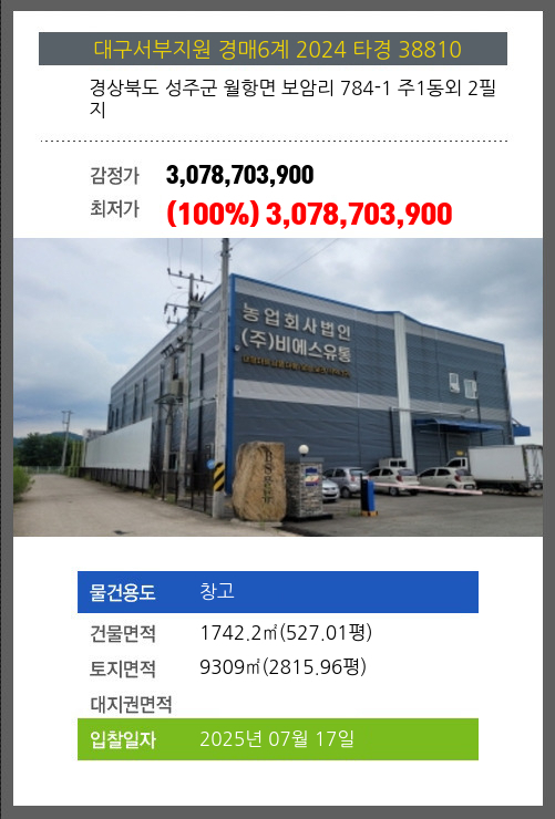 성주창고경매 성주군 월항면 보암리 784-1 주1동외 2필지 №2024 타경 38810