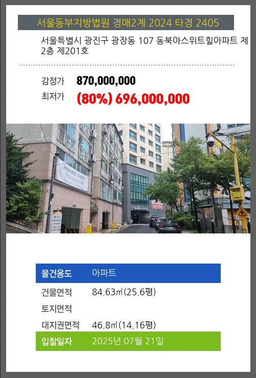 본건은 서울특별시 광진구 광장동 107 동북아스위트힐아파트 제2층 제201호