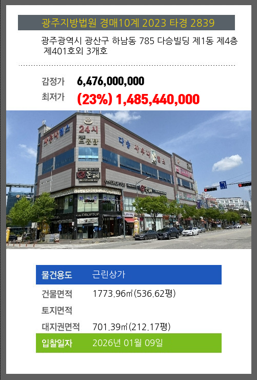 본건은 광주광역시 광산구 하남동 785 다승빌딩 제1동 제4층 제401호외 3개호