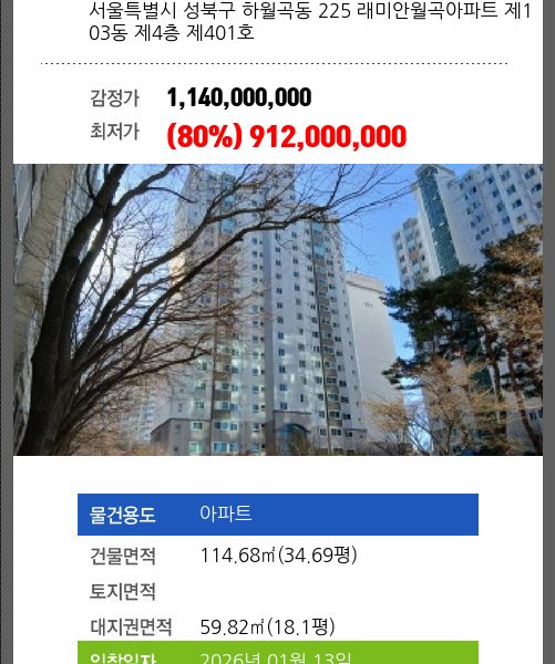 | 용도 | 아파트 | 채권자 | 서** | 감정가 | 832,000,000 |