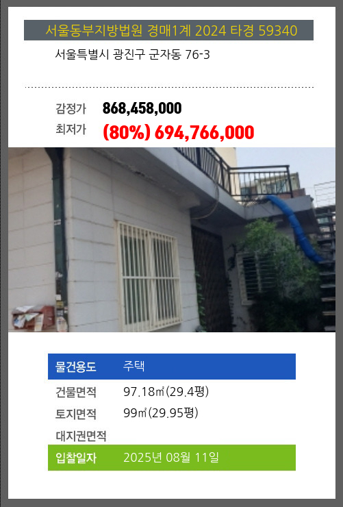 광진주택경매 광진구 군자동 76-3 №2024 타경 59340