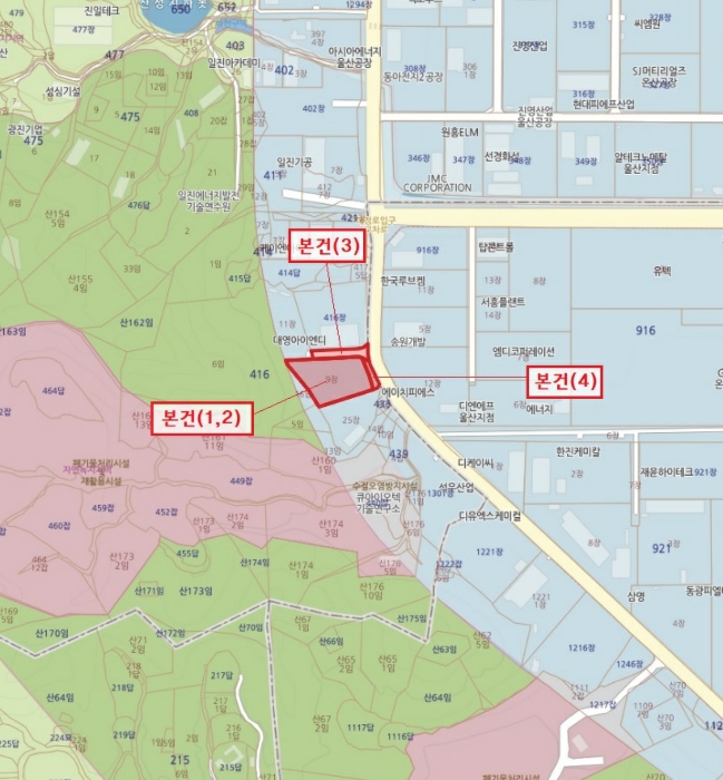 본건은 울산광역시 울주군 온산읍 화산리 416-9 외 2필지