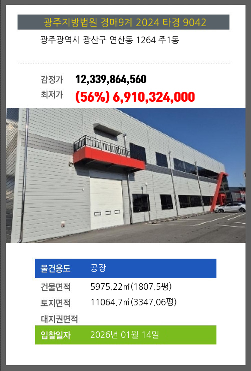 광산공장경매 광산구 연산동 1264 주1동 №2024 타경 9042