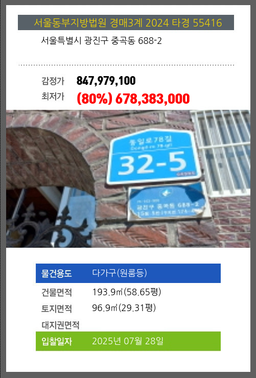 | 신건 | 2025-06-09 | 847,979,100 | 유찰 |