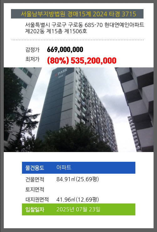 본건은 서울특별시 구로구 구로동 685-70 현대연예인아파트 제202동 제15층 제1506호