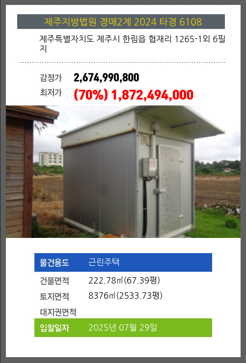 | 신건 | 2025-06-17 | 2,674,990,800 | 유찰 |
