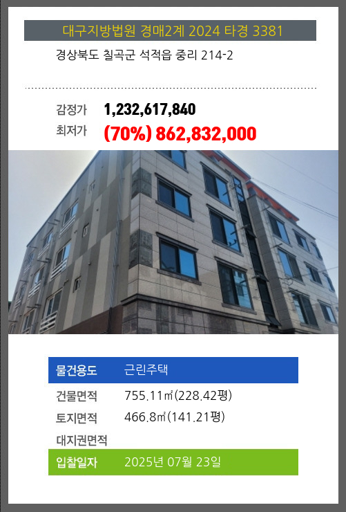 칠곡주택경매 칠곡군 석적읍 중리 214-2 №2024 타경 3381