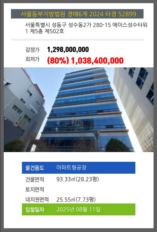 본건은 서울특별시 성동구 성수동2가 280-15 에이스성수타워1 제5층 제502호