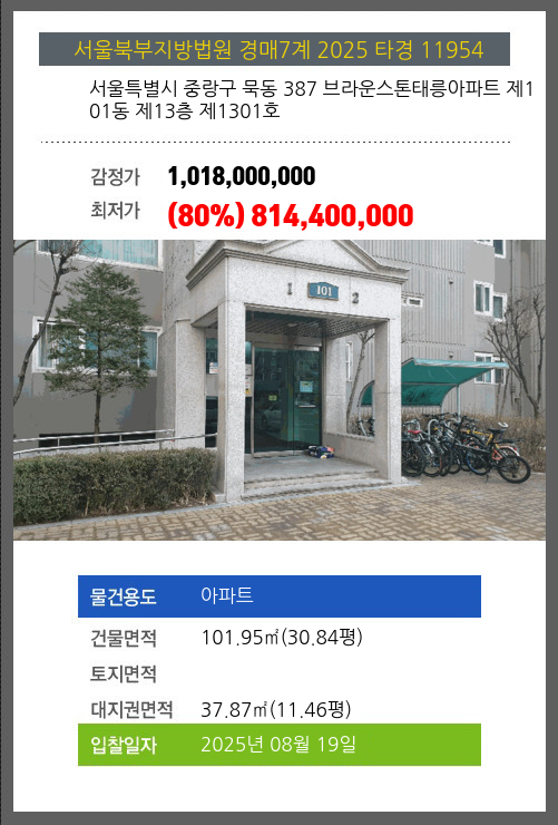 본건은 서울특별시 중랑구 묵동 387 브라운스톤태릉아파트 제101동 제13층 제1301호