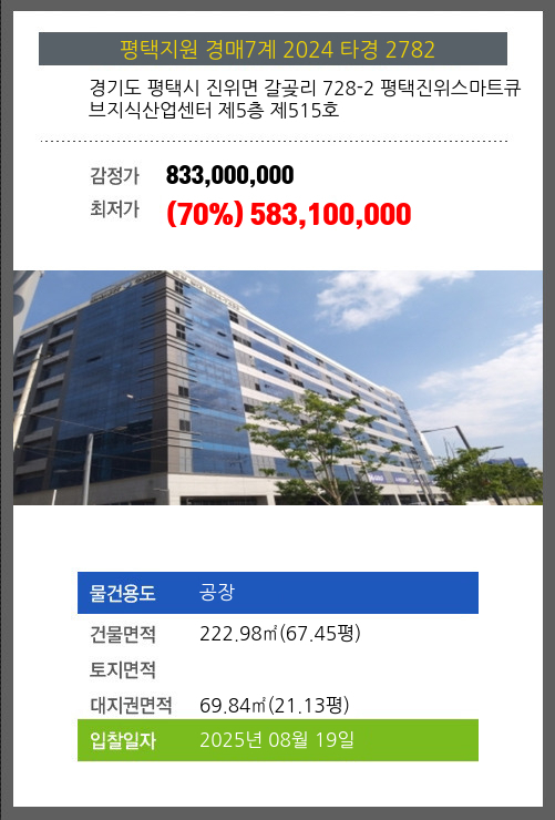 본건은 경기도 평택시 진위면 갈곶리 728-2 평택진위스마트큐브지식산업센터 제5층 제515호