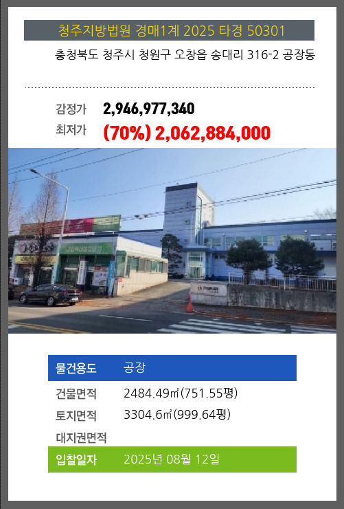 본건은 충청북도 청주시 청원구 오창읍 송대리 316-2 공장동