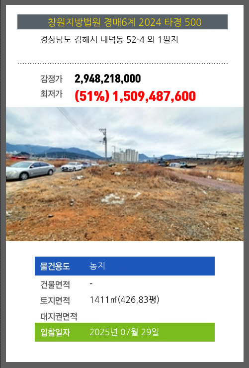 김해농지경매 김해시 내덕동 52-4 외 1필지 №2024 타경 500