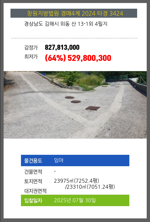 김해임야경매 김해시 외동 산 13-1외 4필지 №2024 타경 3424