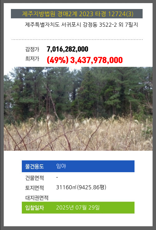 서귀포임야경매 서귀포시 강정동 3522-2 외 7필지 №2023 타경 12724(3)
