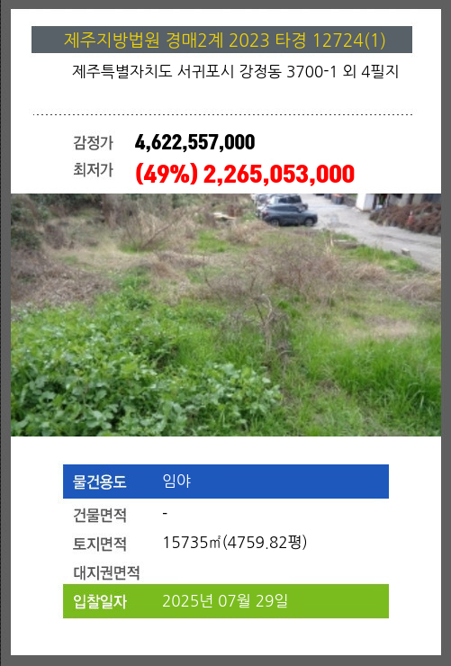 서귀포임야경매 서귀포시 강정동 3700-1 외 4필지 №2023 타경 12724(1)